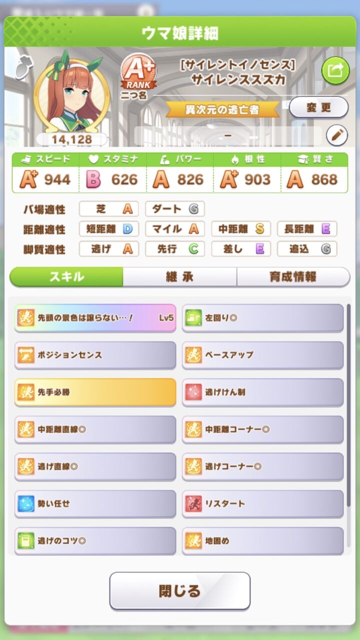 スキルがスカスカになるから継承ヒント理事長で白スキル集めなきゃならんのもキツいよ